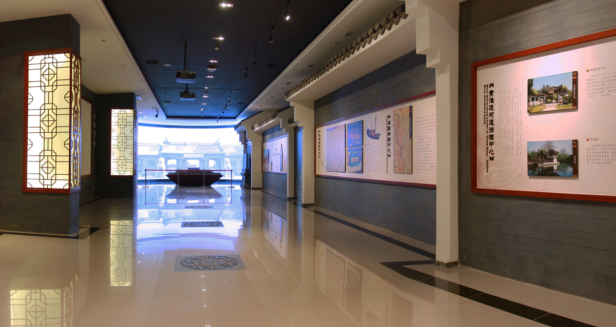 淮安規(guī)劃館是展示淮安城市文化,建設成就的重要平臺,也是公眾交流的平臺,更是對淮安了解的直接窗口,為了能夠更好體現(xiàn)這一地域性,同時避免城市同類館中似曾相識的錯覺,在整體風格上為尋找一條能夠承載這一使命的元素,我們將以“壯麗東南第一州”作為主線,因水而生、因水而興的淮安城,享“壯麗東南第一州”之美譽,因而這是一部具有是文化的歷史城市。