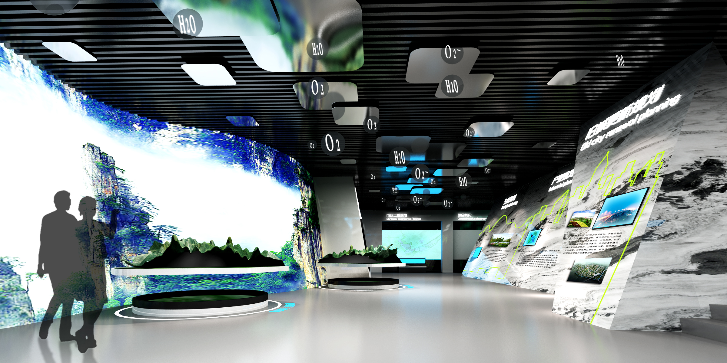 張家界城建規劃館,總建筑面積1959.6平方米,其中布展面積約1800平方米。整個展館按照歷史、現在、未來的時間線索,以“人間勝境,別有洞天”為主題,采用大量高科技展陳手段,將互動游戲、大型多媒體互動沙盤秀、VR漂流體驗、數字沙盤、未來影院等現代聲光電技術融入多項展示環節,集城市展覽、規劃公示、咨詢交流、宣傳教育等多功能于一體,展示張家界悠久獨特的地域文化、奇山異水的絕美景觀和波瀾壯闊的城市建設,并暢望美好未來。