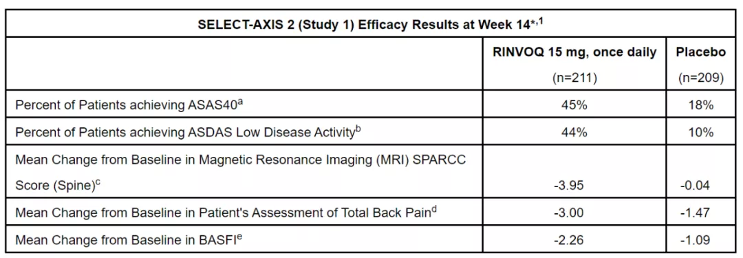 烏帕替尼組中45%的患者達到ASAS40的標準,顯著優于安慰劑組(18%)。