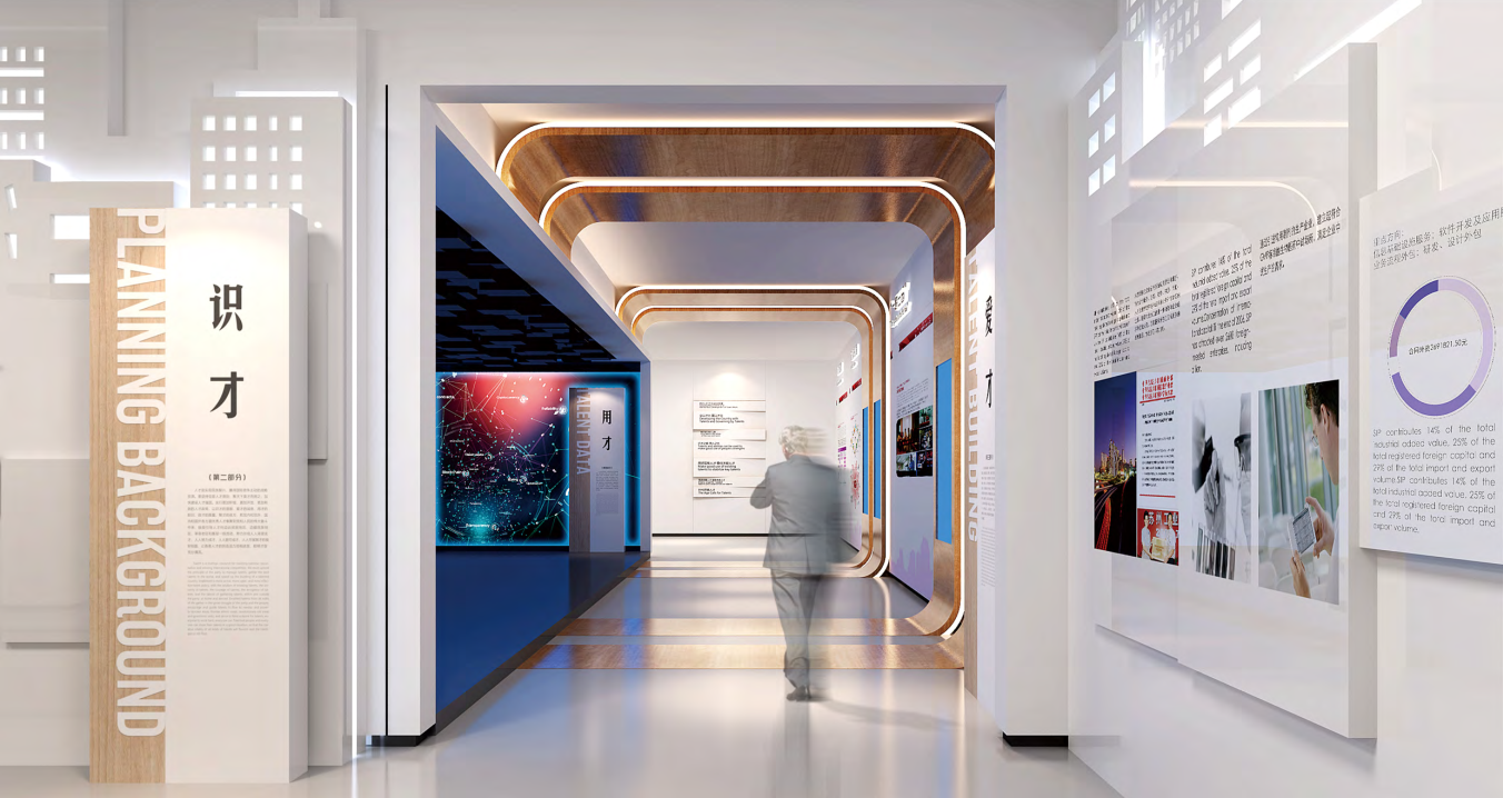 2019年3月5日召開的十三屆全國人大二次會議上,國務院總理李克強作政府工作報告指出,將長三角區(qū)域一體化發(fā)展上升為國家戰(zhàn)略,編制實施發(fā)展規(guī)劃綱要。浙江省省委人才工作領導小組辦公室與嘉興市委聯(lián)合出臺《嘉興市服務長三角人才一體化發(fā)展的意見(試行)》,聚焦“五個一體化”,推出以“人才”為核心的浙江長三角人才大廈項目。 由金螳螂文化擔任設計與施工的浙江長三角人才大廈項目,位于嘉興市南湖區(qū)國際金融廣場金融大廈B座的21、22和23層,每層約1700平方米。其中21層是長三角人才項目集聚區(qū);22層是長三角企業(yè)集聚區(qū)、高校聯(lián)合會、協(xié)會集聚區(qū);23層是長三角人才數(shù)字展示中心、長三角人才會客廳、人才驛站、公共服務信息平臺、嘉興長三角人才發(fā)展研究院、運營公司,展廳主要分為兩個區(qū)域,功能區(qū)和展示區(qū)。 展示+交流 綜合服務空間 科技感、現(xiàn)代感、生態(tài)感具足的人才大廈空間中,高科技互動、大數(shù)據(jù)智能、專業(yè)化服務相互交融。 功能區(qū)主要負責支撐“人才高質量發(fā)展的最后一公里服務”,展示區(qū)圍繞新時代長三角人才一體化發(fā)展主題,多維度展示長三角人才、產(chǎn)業(yè)、政策、城市等配套,打造服務長三角人才一體化展廳。 智慧人才展廳 展廳引用習近平總書記十九大報告中“以識才的慧眼、愛才的誠意、用才的膽識、容才的雅量、聚才的良方,把黨內(nèi)和黨外、國內(nèi)和國外各方面優(yōu)秀人才集聚到黨和人民的偉大奮斗中來。”一句話貫穿整個廳;以人才為核心,吸引人才、服務人才、留住人才等角度打造智慧人才展廳。 展廳將展示內(nèi)容與公共空間有機融合,將展線融入到整個辦公空間之內(nèi),以移動滑屏、透明屏、混合現(xiàn)實互動、隔空互動等多種展示方式,全方位詮釋長三角一體化發(fā)展戰(zhàn)略的政策與具體實施方略。 金螳螂文化匠心質造,將傾力把“浙江長三角人才大廈”打造成為長三角區(qū)域集人才集聚、項目孵化、集成服務、成果展示、信息集散、活動承辦、城市合作于一體的人才創(chuàng)新創(chuàng)業(yè)綜合性平臺。