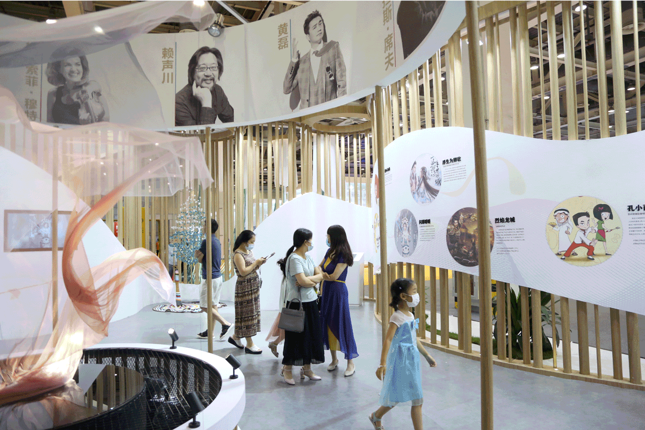 手繪的園區(qū)創(chuàng)意產(chǎn)業(yè)地圖,了解園區(qū)動漫游戲、創(chuàng)意設(shè)計、演藝娛樂、影視創(chuàng)制等文化產(chǎn)業(yè)的分布情況;從中央藝術(shù)裝置傳統(tǒng)絲綢元素與現(xiàn)代科技元素的融合中,感受藝術(shù)之魂;從文化作品萬花筒、經(jīng)典劇作試聽設(shè)備中,體會“創(chuàng)意賦能生活”……