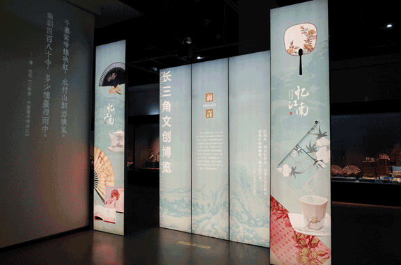 “江南好,風景舊曾諳。”江南之美,在粉墻黛瓦的雅韻中,在吳儂軟語的溫柔里,在器物工藝的精妙間。 12月1日至12月14日,浙江省博物館(孤山館區·浙江西湖美術館)展出“憶江南——長三角文創博覽”。長三角三省一市博物館文創聯盟成員浙江省博物館、上海博物館、南京博物院、安徽博物院全體參展,中國絲綢博物館、浙江自然博物院、杭州博物館等浙江省文瀾閣博物館商店聯盟單位成員積極參與。 江南文化是長三角地區的共有基因、精神紐帶,浙江省博物館積極響應國家《長江三角洲區域一體化發展規劃綱要》,推動文化資源優化配置,積極傳播江南文化的創新發展理念,加強長三角三省一市博物館文創聯盟品牌影響力,共同打造江南文化區域特色文化產品。 在浙江省文物局的大力支持下,浙江省博物館牽頭的長三角三省一市博物館文創聯盟攜手浙江省文瀾閣博物館商店聯盟,由金螳螂文化深化設計打造“憶江南——長三角文創博覽”。 走進“憶江南——長三角文創博覽”,恍然有穿越時空之感。此次展出文創產品共計九百余件,涵蓋了生活家居、文房用品、服裝飾品、數碼3c、工藝陶瓷類、絲織刺繡類、飲品類等等,不僅種類豐富,且設計新穎巧妙、色彩奪人眼球,使人目不暇接,堪稱是一場江南傳統文化在新時代語境下的展示盛宴。 融文物元素于紋飾主題,將形、色、光、影完美統一,設計簡約而不簡單。金螳螂文化以展品呈現為本,輔以空間氛圍營造,展現文創之創新與趣味,使觀眾置身于古今交錯的中華美學集合空間。