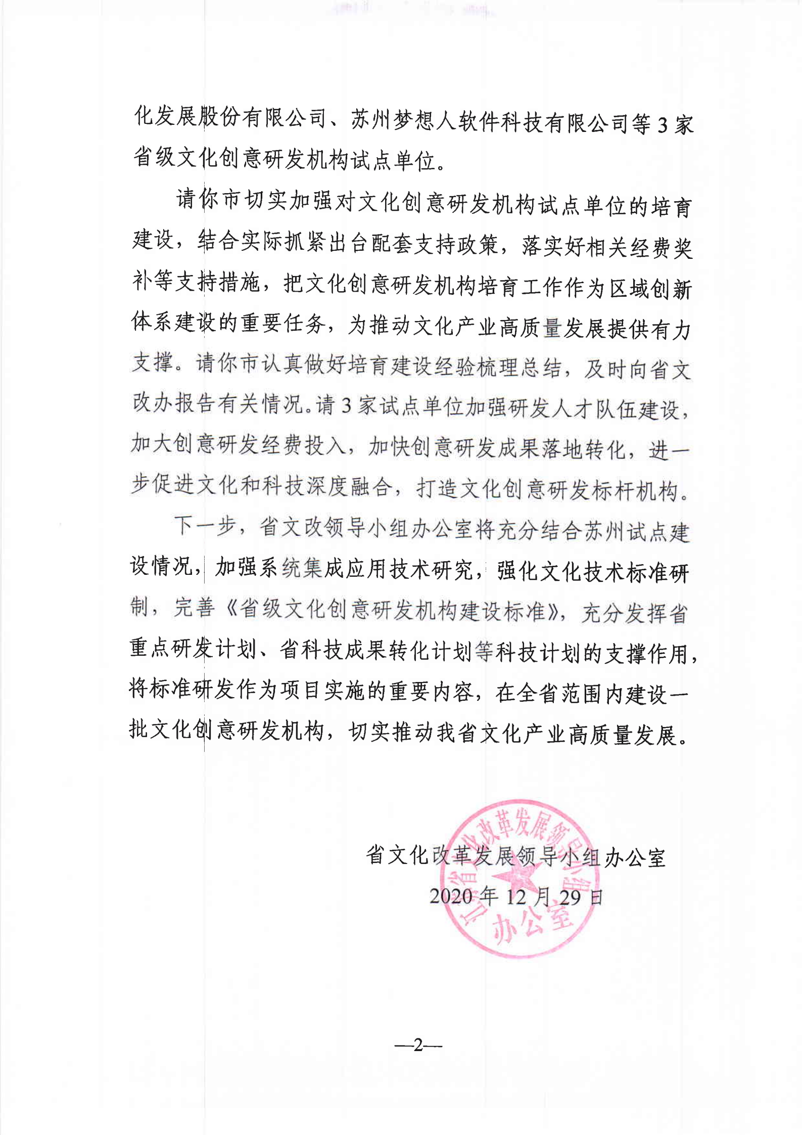 為貫徹落實(shí)江蘇省《關(guān)于促進(jìn)文化科技深度融合的實(shí)施意見》,深入推進(jìn)文化與科技深度融合,推動(dòng)文化產(chǎn)業(yè)高質(zhì)量發(fā)展,根據(jù)《江蘇省重點(diǎn)文化科技企業(yè)管理辦法》,經(jīng)各地各集團(tuán)推薦、專家評(píng)審、部門會(huì)商,現(xiàn)認(rèn)定蘇州金螳螂文化發(fā)展股份有限公司等45家企業(yè)為2020年度江蘇省重點(diǎn)文化科技企業(yè)。