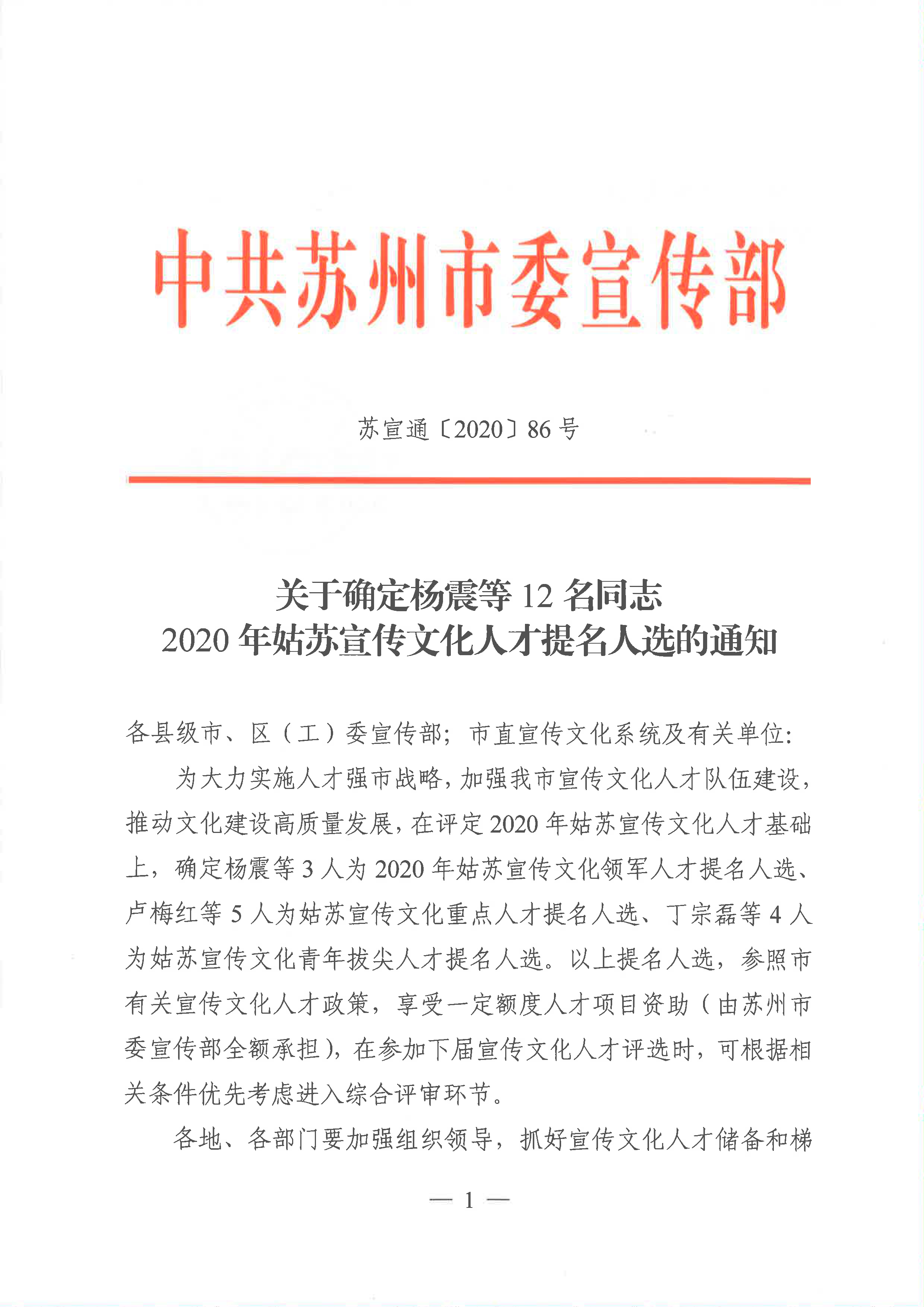 中共蘇州市委宣傳部發(fā)布了2020年姑蘇宣傳文化人才名單,確定金螳螂文化董事長(zhǎng)楊震先生2020年姑蘇宣傳文化領(lǐng)軍人才提名人選。