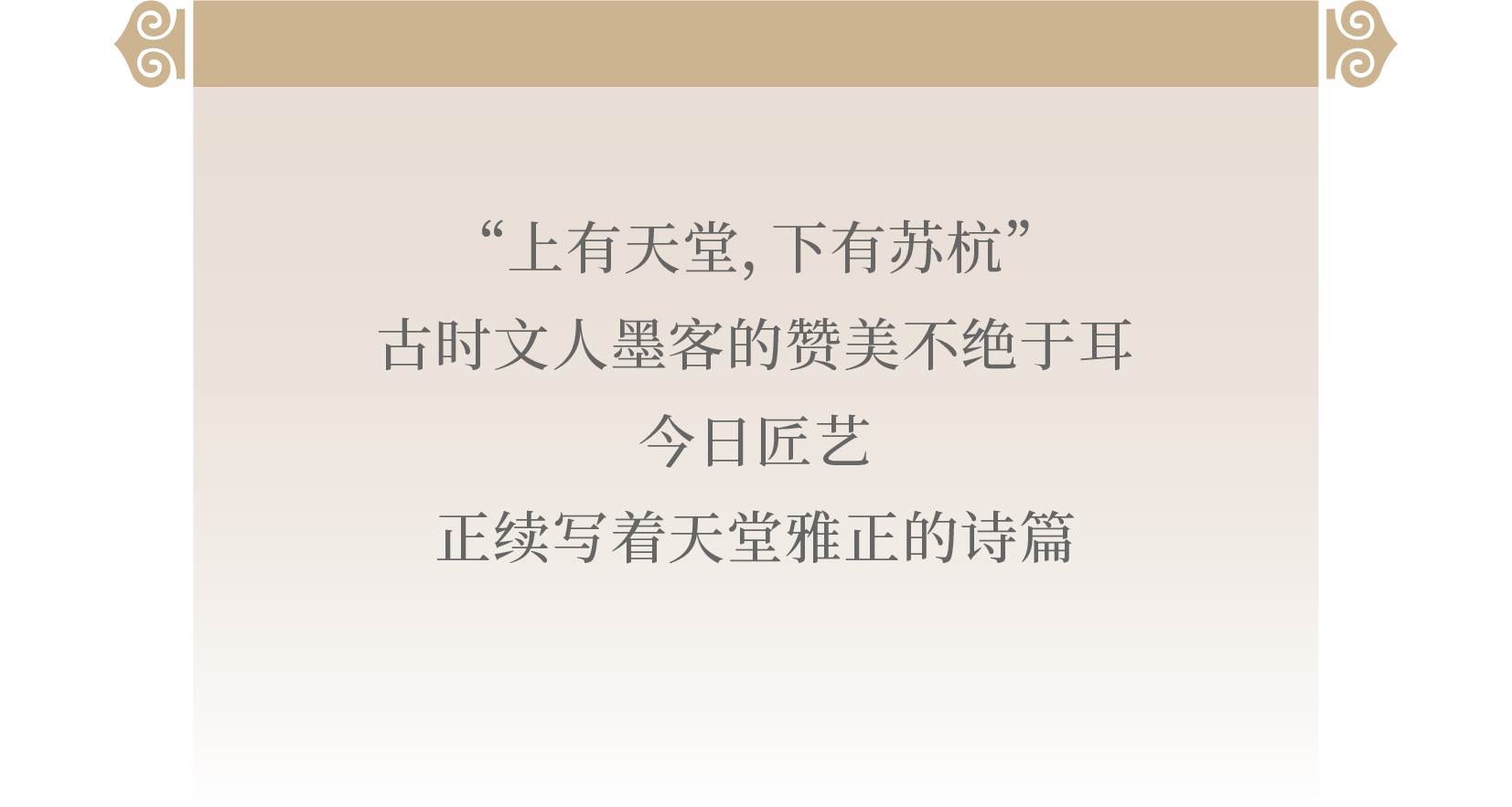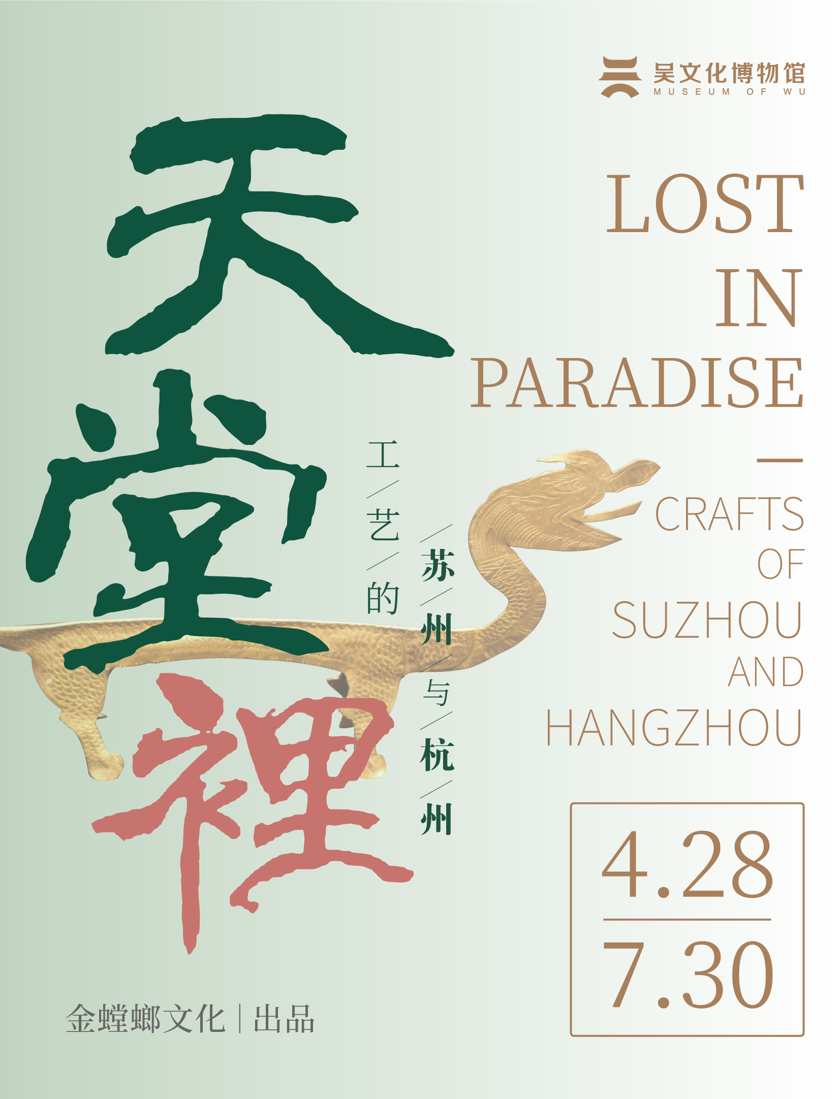 (視頻) 盡數古時與今日,繼往開來的非遺技藝,還原蘇杭兩地舊時之景;豐富細節的工藝拆解,帶觀眾走入工藝的天堂。 “天堂里——工藝的蘇州和杭州”特展由吳文化博物館聯合蘇州絲綢博物館、杭州工藝美術博物館(杭州中國刀剪劍、扇業、傘業博物館)主辦,同時受到南京博物院、蘇州博物館、杭州博物館、杭州市文物考古研究所、臨安區博物館、蕭山博物館6家文博機構的支持。 展覽共分為兩大部分:“古時”和“今日”,通過時間線和古今對比,以文物回望古時精致繁華的生活追求,以工藝講述今日守正創新的動人故事。 展覽的第一單元“古時”,側重于展出巧奪天工的文物,以金銀器、玉器、瓷器、竹木器、絲織物為主,共展出相關代表性文物60余件套。 在這一單元中,可以看到多家博物館的鎮館之寶,如南京博物院的金蟬玉葉飾件;杭州市蕭山區博物館的顯德五年舍利銅塔;蘇州博物館金龍;杭州市臨安區博物館的越窯青釉瓷杯托;杭州博物館藏“行春橋魏三郎匠刻”款雙夾層鎏金牡丹紋銀盞等眾多精美古代藝術品。 欣賞更多「鎮館之寶」 △ 金蟬玉葉飾件,明,南京博物院藏 △ 朱碧山造銀槎杯,元,吳文化博物館藏 △ 顯德五年舍利銅塔,五代(吳越958年),蕭山博物館藏 △ 大金龍,唐,蘇州博物館藏 △ 行春橋魏三郎匠刻牡丹紋鎏金銀盞,宋,杭州博物館藏 △ 越窯青釉瓷杯托,五代,臨安區博物館藏 △ 藏青地海水云龍紋繡蟒袍,清,蘇州絲綢博物館藏 展覽以詩文為線索,為觀眾描繪出蘇杭的人間煙火氣。從白居易到張岱,從坊市鬧猛到人間詩酒茶,無不彌散著人間天堂的氣息,這些詩賦辭藻和小說話本用最浪漫的方式傾訴著世人對蘇杭的向往。 第二單元“今日”,側重于展示薪火相傳的40項蘇杭工藝,共計展出140余件當代非遺工藝品。 不同于以往的展覽,《天堂里——工藝的蘇州與杭州》中,選擇了當時人記當時事的視角,通過唐詩、宋詞、元曲、明清小說,闡釋使用文物的生活場景,描述文物的質地,還原蘇杭兩地舊時之景,更有豐富細節的工藝拆解帶觀眾走入工藝的天堂。 為了讓觀眾更好地了解工藝背后的制作過程,展覽在絲織、木版年畫、綢傘、油紙傘、紅木雕刻、明式家具的展區設置了互動體驗。 推今及古,返璞歸真,共敘詩話下的天堂,人間中的蘇杭。 彼時的開源,如今的傳承,以文物回望古時精致繁華的生活追求。2023年4月28日至7月30日,“天堂里——工藝的蘇州與杭州”展覽在吳文化博物館傾情呈現。 金螳螂文化生于蘇州、受江南文化浸潤,此次設計并實施吳文化博物館“天堂里——工藝的蘇州和杭州”特展,與您一同尋訪精巧的非遺工藝、守正創新的動人故事。