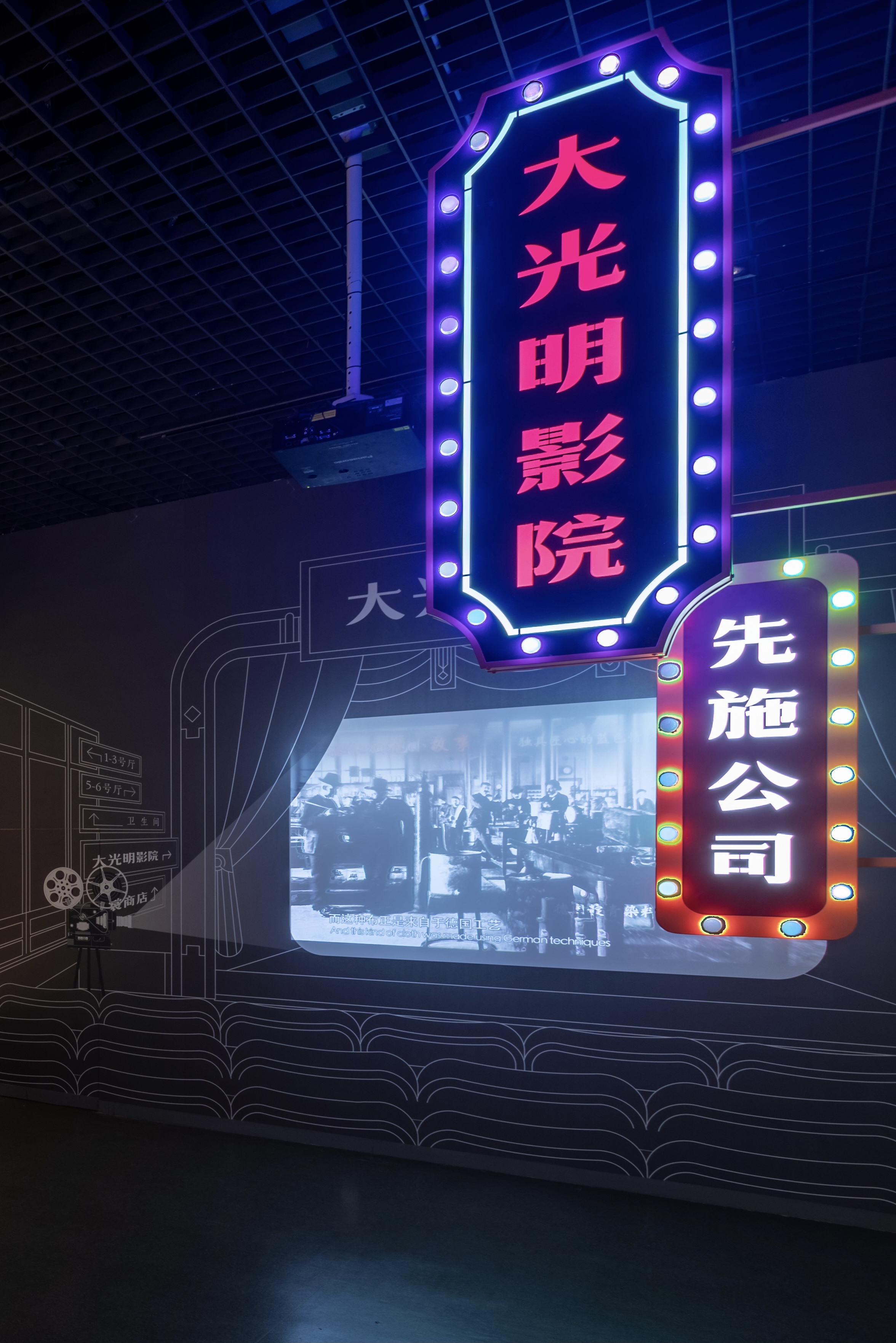 展覽中,我們設(shè)計了去上海、回徽州、到法國等多個集聲影于一體的打卡點,運用劇場的手法來表達人物故事。