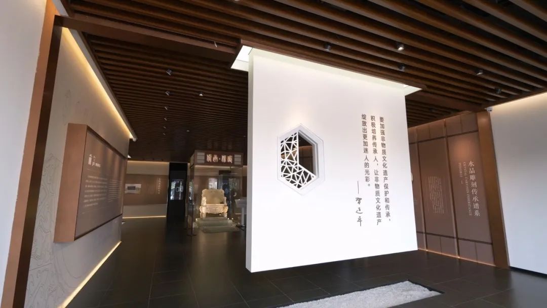 全國唯一一個 以國家級項目水晶雕刻為主題的展覽館 東海水晶雕刻非遺館順利開館! 在這里 全方位體驗東海水晶雕刻的魅力 欣賞東海水晶雕刻藝術精品 解讀古今中外水晶文化的歷史演變 開啟一場水晶非遺傳承的研學之旅 (視頻號) 9月20日,東海水晶雕刻非遺館開館儀式暨2023“錫山·東海”優秀非遺項目聯展舉行。國家文旅部原副部長、直屬機關黨委書記常克仁,連云港市副市長、東海縣委書記宋波共同為東海水晶雕刻非遺館揭牌。 東海水晶雕刻非遺館坐落于江蘇省連云港市中國水晶文化創意產業園,建筑面積4500余平方米,內有藏品150余件。 △ 建筑外立面的實施中,金螳螂文化采用水晶的截面六邊形為元素,定制化設計了穿孔鋁板和燈具 2021年,東海水晶雕刻技藝入選國家級非物質文化遺產保護名錄,標志著東海縣非遺工作邁向嶄新的一步。 深入挖掘非遺水晶雕刻的文化內涵,合理規劃展示內容,金螳螂文化項目團隊力求在展館空間內全景呈現水晶雕刻作品之精美、雕刻技藝之精湛,展現非遺文化的傳承延續之脈絡。 △ 透過花窗,“傳承·保護”四個字映入眼簾,展現著非遺精神 進入序廳,中心位置是展館之最“仿古水晶九龍椅”,之后是東海水晶雕刻傳承人譜系、水晶詩詞多媒體、水晶的形成與郯廬地震遺址等內容展示。 晶彩歲月,傳承致遠。U型投影幕與沙盤燈控相結合,展示中國古代時期各地出土的水晶器物和玉石雕刻的技藝的傳承。 地面的水晶沙盤和影片聯動,可以欣賞中國歷代各個時期出土的水晶地域分布,沉浸式感受水晶雕刻技藝及文化源流。 “天工·水晶的匠心綻放”展區,以清光緒十七年李澄淵所繪《玉作圖》為浮雕背景,展示了古人對水晶雕刻經驗的長期積累并世代傳承。 中心桌上打造IP卡通人物模型古代水晶雕刻技藝十二圖技法展演,刻畫了雕琢匠人操作的場面并備注操作說明,可以通過VR眼鏡看到動態的雕琢場景,體現講習互動、展示體驗等非遺傳承功能。 以多媒體《甲天下的東海水晶》、產業媒體觸摸柱、東海水晶雕刻發展之路榮譽墻、東海水晶雕刻工具沿革、東海水晶雕刻藝術精品等影視圖文和實物,充分展示水晶雕刻由小到大,從弱漸強,由粗變精,形成了多種流派共同發展的格局,具有時代藝術價值。 在建設中更多地采用現代科技技術,根據展廳的不同部分和不同展出內容調配燈光,設置U型幕與沙盤燈控結合的展示形式,打造了IP卡通人物展示模型,電子模擬水晶雕刻操作流程等互動體驗設施。 在項目實施過程中,金螳螂文化各部門通力配合,保質保量地完成項目完工節點,得到了業主認可并收獲了表揚信和獎牌。 東海水晶雕刻非遺館的開館,將進一步擴大東海水晶雕刻國家級非遺項目的影響力,為東海水晶雕刻項目的傳承弘揚和文旅產業的持續發展提供強力支撐。